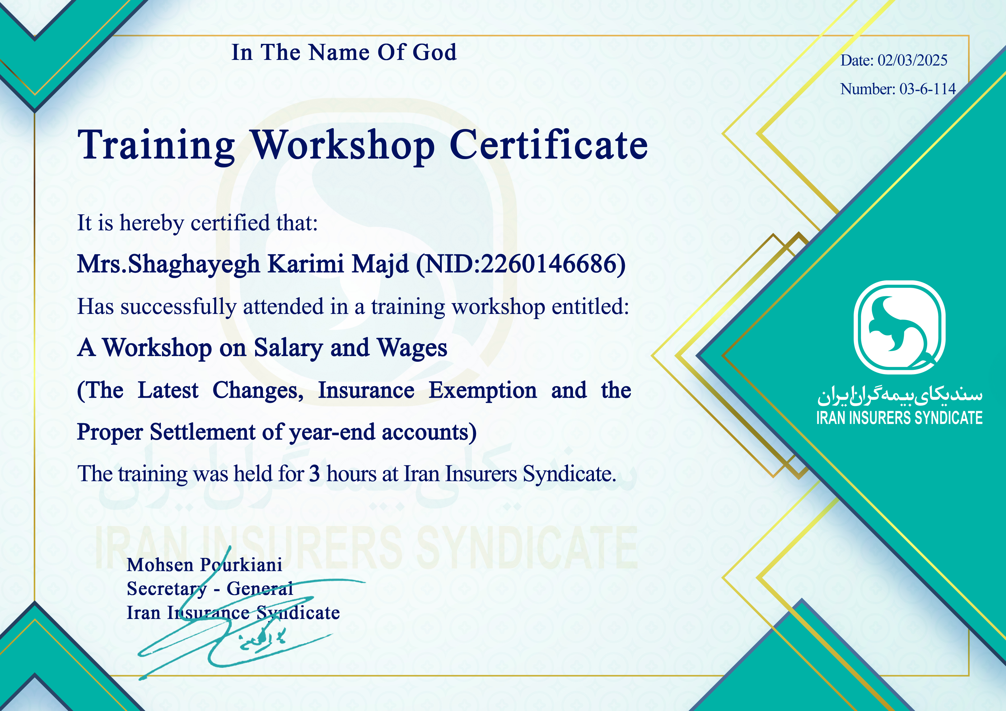 jpg دوره آموزشی کارگاه آموزشی حقوق و دستمزد (آشنایی با آخرین تغییرات قانونی، معافیت های بیمه ای و نحوه صحیح تسویه حساب پایان سال) 114-6-03 ۴.۳۶ مگابایت دریافت فایل